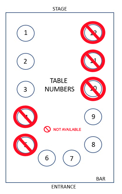 If you are reserving a full table, please indicate your preferred table using this diagram and we will do our best to accommodate you.